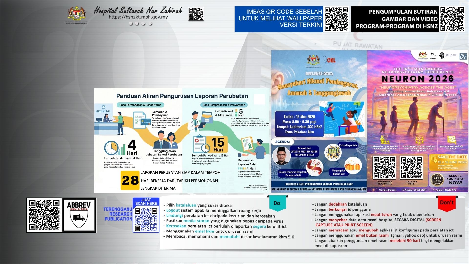 | Waktu Lawatan Wad | Ahad – Khamis: 12.00 tgh – 2.00 ptg, 5.00 – 7.00 mlm Jumaat / Cuti Umum: 11.00 pg – 2.00 ptg, 4.00 – 7.00 mlm |